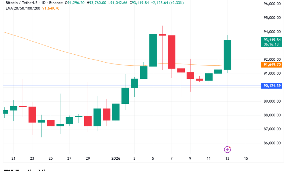 kryptobörsen > News > Blockchain > Bitcoin Reclaims $93K as Core US Inflation Slips, Is $100K Next?