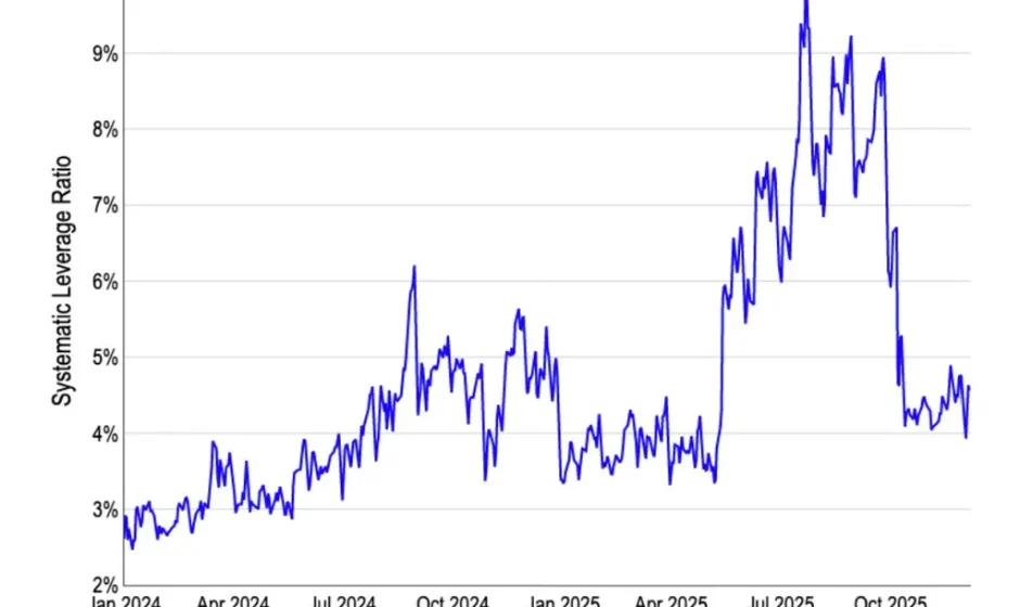 Our systemic leverage ratio, which tracks purely speculative positioning, has stabilized at ~4%–5% of total market cap, down from ~10% this summer.