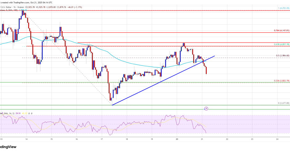 Ethereum price started a recovery wave above $3,950. ETH failed to clear $4,050 and recently started a fresh decline below $4,000.