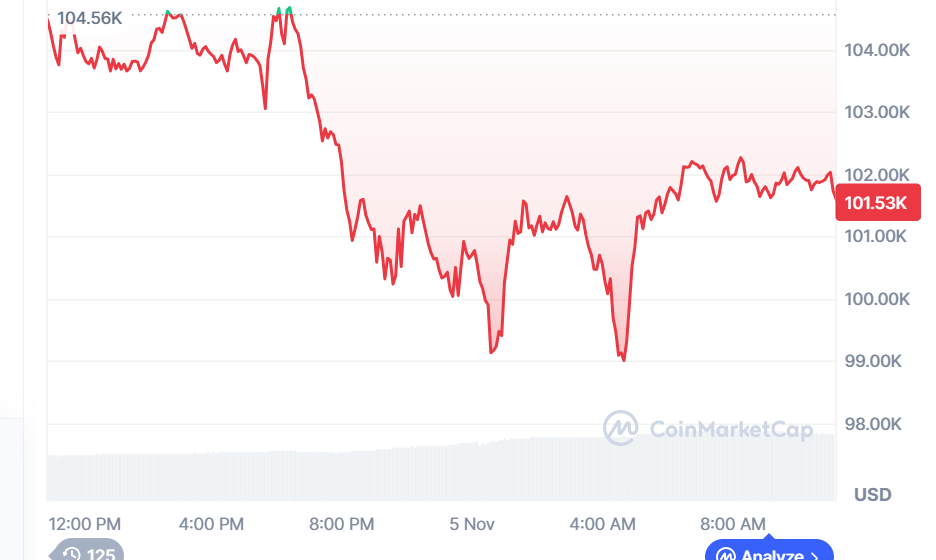 Bitcoin’s recent price action reflects short-term volatility. BTC currently trades around $101,535 after a sharp drop below $100,000 earlier in the week. The market remains cautious as traders watch key resistance near $102,000. Yet, Lummis’ comments suggest long-term conviction, not short-term trading motivation.