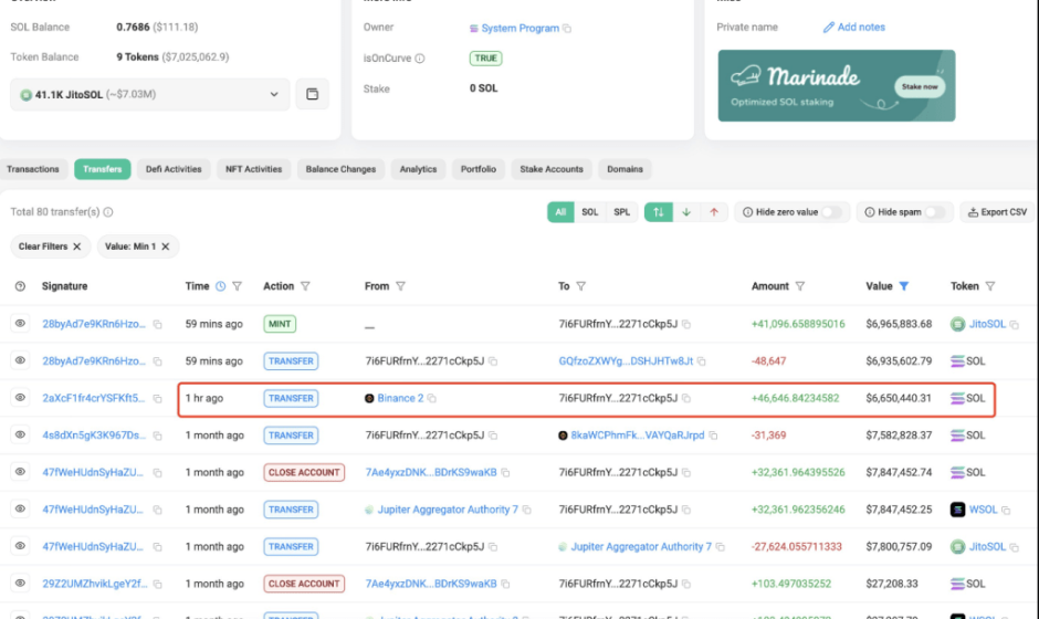 7i6FUR…kp5J withdrew 41,096 $SOL($6.96M) from #Binance 1 hour ago and staked it.https://t.co/CvCPgVEkARhttps://t.co/KsY2f5UzBahttps://t.co/UEwsxSnVlR pic.twitter.com/pCa0MGEdjU