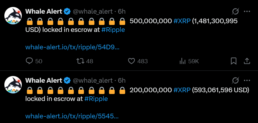 In particular, there were 700 million tokens moved between unknown wallets as per Whale Alert. However, these tokens were locked in Escrow by Ripple.