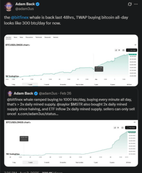Blockstream CEO, Adam Back, is the one who pointed it out, while also reminding the community that the same whale was acquiring $BTC at a rate of 1,000 per day back in February.