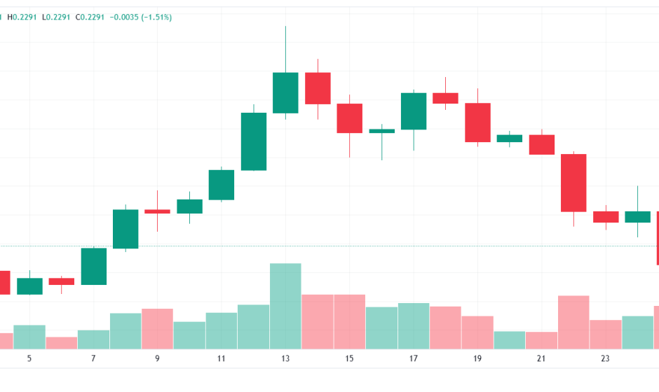 After the burst, prices consolidated above the breakout range. Resistance levels formed around $0.39. However, a sharp correction followed, sending DOGE down to $0.22. Despite that drop, bulls pointed out the token is still holding a strong base near $0.20, which could act as a launchpad for the next leg higher.